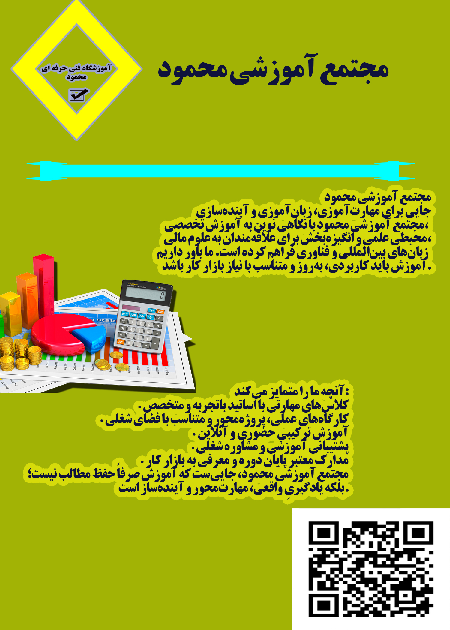 زیرنظرسازمان فنی حرفه ی دررشته های امورمالی وبازرگانی وفناوری اطلاعات و زبان انگلیسی وعربی